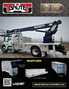 Limited Lifetime Warranty Statement: Unique Truck Accessories warrants tool box workmanship for the lifetime of the product, providing the customer, at his expense, returns the product back to Unique for workmanship repairs. After repairs, Unique will return the product, at customer expense. Powder coated products, Unique warrants the powder coating of any product for a limited time of 6 months from date of purchase, proof of purchase required. Warranty on all other products is to be free of defects in materials for a period of one year from the original purchase from Unique. This warranty covers the cost of the defective part and does not cover the cost of removal, installation or other incidental or consequential charges or damages. This warranty is void if any damage to the product is due to misuse, abuse, neglect, accident or improper installation or any other use contrary to the instructions with the product. Warranty will be prorated based on the length of time. Warranty products should be returned to Unique at the expense of the sender and a credit will be issued for the product and freight expense upon inspection of the product. Any product found to be non-defective will not receive credit and will be returned to the sender at their expense. 1000 N. Clay Street Sturgis, MI 49091 800●239●2343 UNIQUETRUCKACCESSORIES.COM Elliott L65 w/shorter wheelbase upfitted with Brute two piece Flatbed, Crossbox, Bedsafes, Torchbox, Underbodies, and Fender Skirts